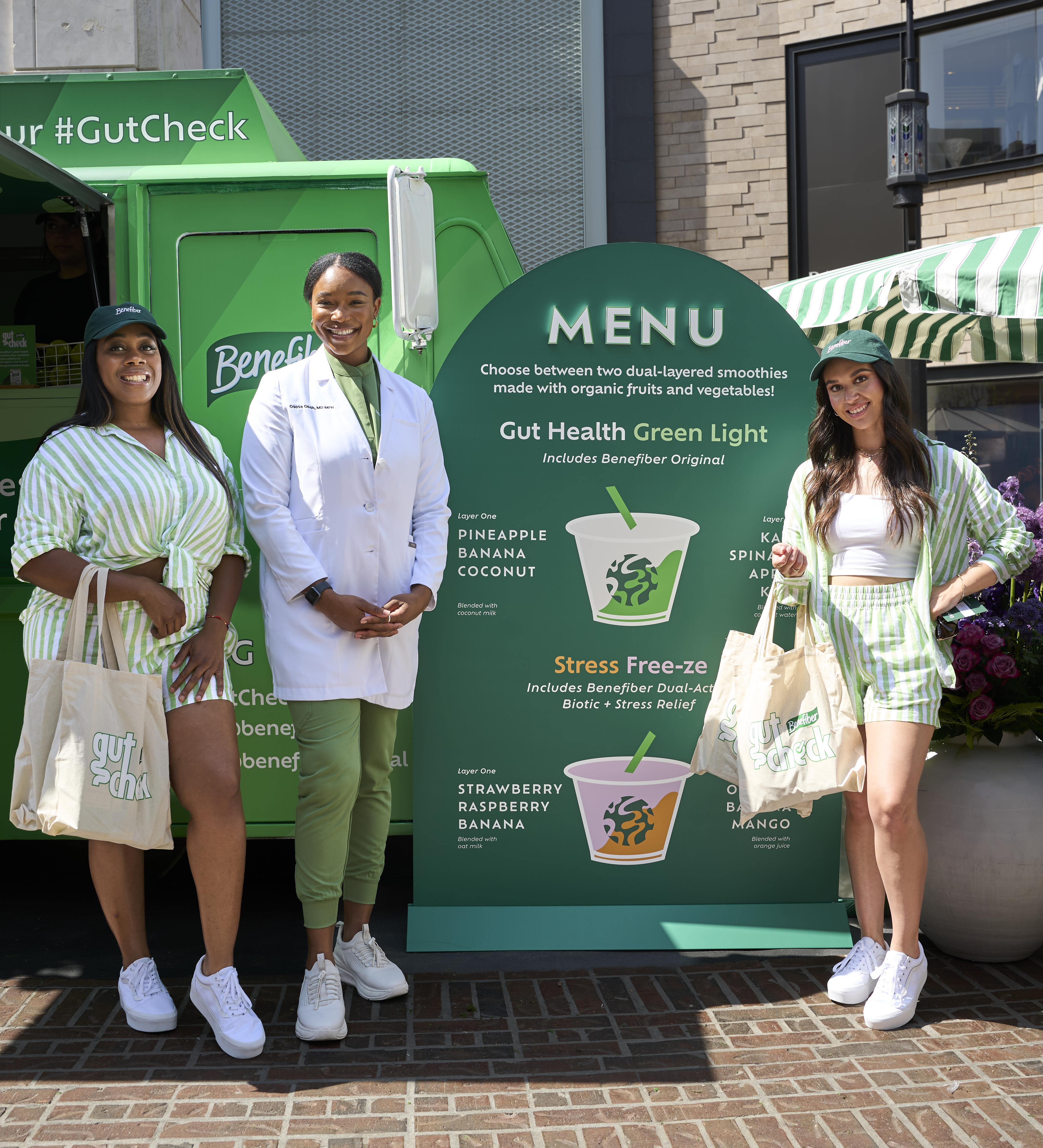 We set up our own smoothie truck and invited a gut health expert to provide education about science-backed gut health solutions. We added thoughtful touches like a Gut Check topiary, exclusive merch, deliciously petty copy, and actual gut-healthy smoothies infused with Benefiber.