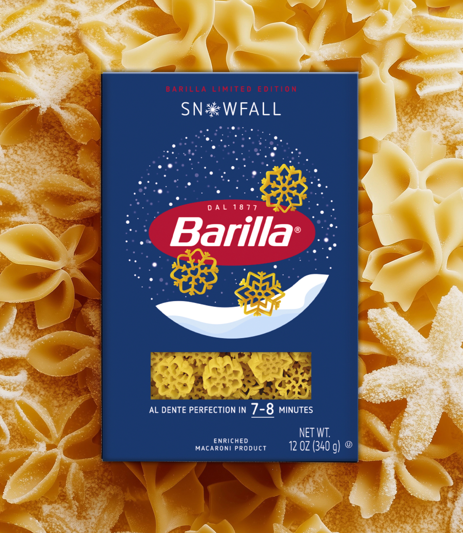 To launch Barilla's LTO snowflake-shaped pasta, we christened it with a festive name, Snowfall, and crafted a luxe mailer bestowed with custom holiday merch that left quite an impression.