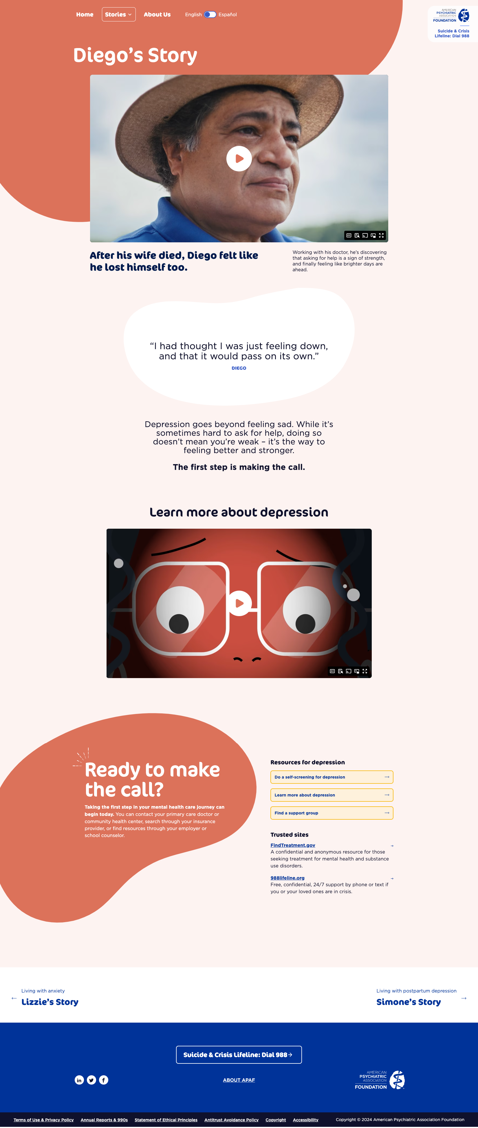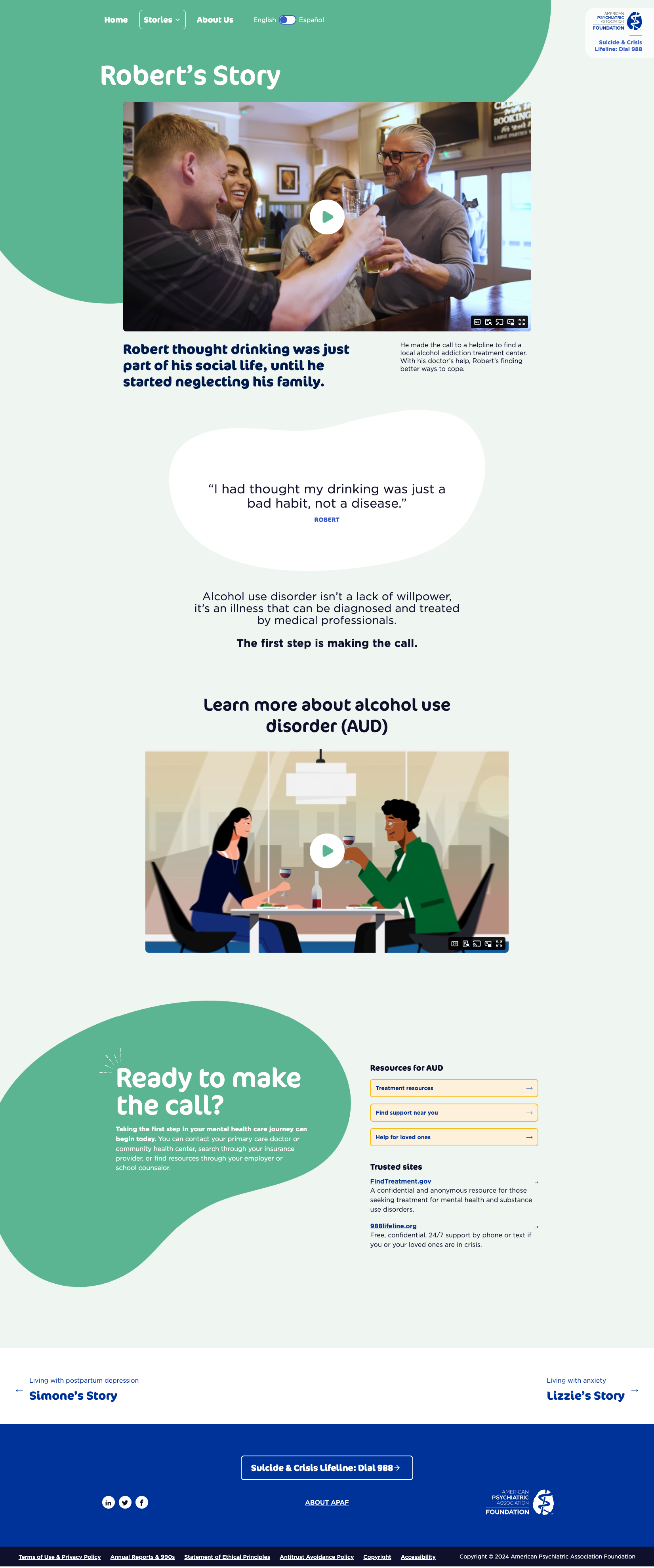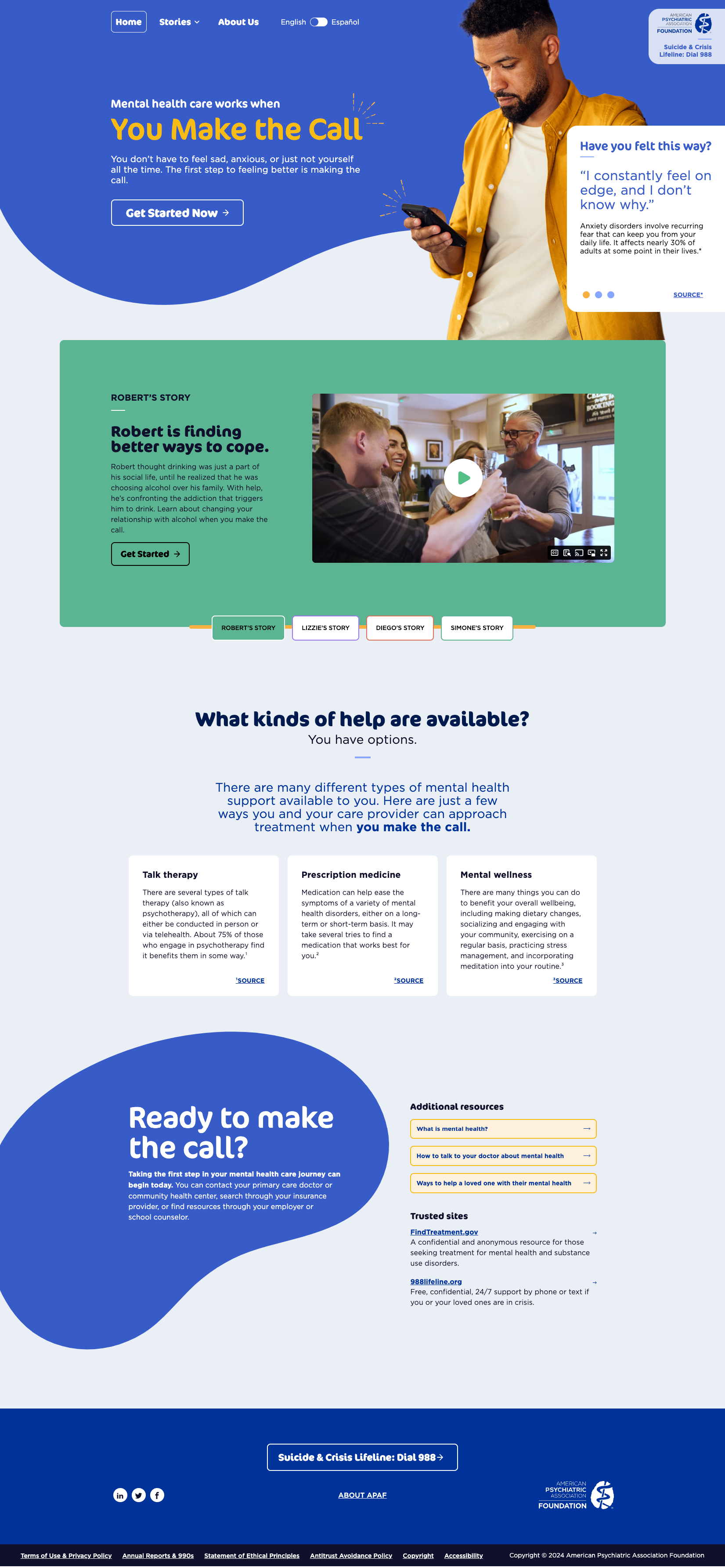 In order to make mental health treatment feel accessible and empowering, we created “You Make a Call”— clear call-to-action available in English and Spanish. The campaign leads to our website that offers resources, relatable stories, and practical steps to help Americans get the help they deserve.